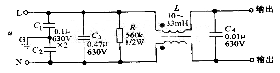 LED凈化燈電源一般采用簡易式單級EMI濾波器,主要包括共模扼流圈和濾波電容。