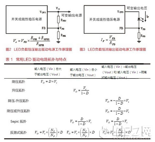 常用LED凈化燈驅(qū)動電路拓撲與特點如表1所示,公式中D表示開關(guān)變換脈沖占空比。