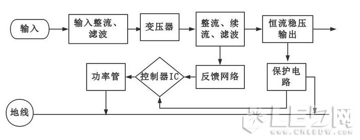 任何電源要實現(xiàn)恒流功能,均需對電源的輸出電流進行檢測取樣,與電流設(shè)置值即參考值進行比較,經(jīng)負反饋放大調(diào)節(jié)(P、PI、PID)。線性串聯(lián)穩(wěn)壓是調(diào)節(jié)調(diào)整管的壓降,而開關(guān)電源是調(diào)節(jié)變換器的脈寬(或占空比),維持輸出電流的恒定。