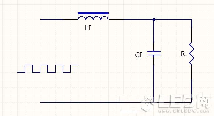 在開關(guān)電源中帶磁心的電感器,一般采用電感線圈Lf 與輸出濾波電容器Cf 構(gòu)成的“L”型濾波器如下圖。電感線圈對高頻成分呈現(xiàn)很高的感抗,而電容對高頻成分呈現(xiàn)很小容抗,已達到在電路中抑制紋波和平滑直流的作用。