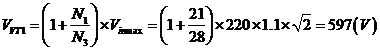 根據(jù)單端正激式變換器計開關(guān)管VT1承受最大電壓公式得:
