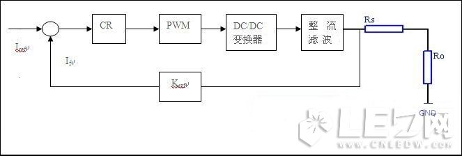 下圖是恒流控制反饋系統(tǒng)圖。圖中Iref是電流設(shè)置基準;CR是電流PI調(diào)節(jié);Kfi是電流取樣反饋系數(shù);RS、Ro是電流取樣電阻和負載電阻。該系統(tǒng)采用是電流模式控制,可以檢測變換器輸出電流,適當(dāng)?shù)剡x取反饋系數(shù)Kfi, 通過P(比例)、PI(比例積分)、PID(比例積分微分器)實現(xiàn)恒流控制。在反饋系數(shù)不變情況下,也可以通過改變電壓或電流實現(xiàn)恒流值控制。