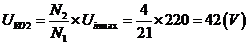 續(xù)流二極管VD2上的反向電壓UVD2與輸出變壓器次級電壓的最大值是相同的。根據(jù)單端正激式變換器公式得: