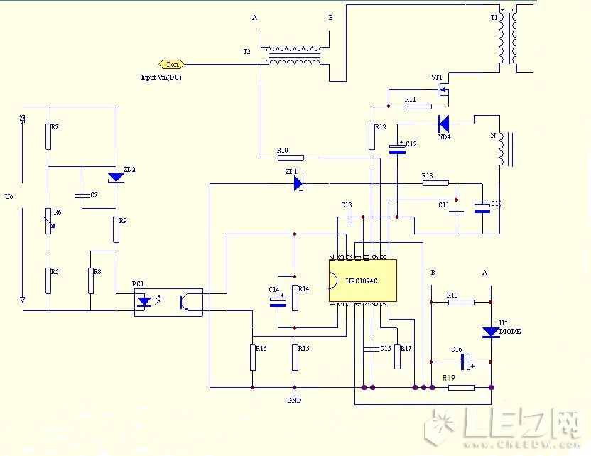 過電壓保護電路由光電耦合器PC1、R16組成的。當(dāng)輸出電壓超過15V時,光電耦合器PC1動作,經(jīng)過引腳2接入反饋電壓電路,使輸出級鎖定為低電平。