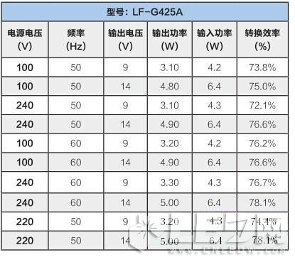 經(jīng)過測試,5個型號的LED控制裝置中,型號為LF-G425A的轉(zhuǎn)換效率最高達到78.1%,最低時為72.1%,為5個型號中轉(zhuǎn)換效率最高的;型號為LQC100VA-40HNA的轉(zhuǎn)換效率最高只達到53.8%,最低時只為51.7%,為5個型號中轉(zhuǎn)換效率最低的一個。