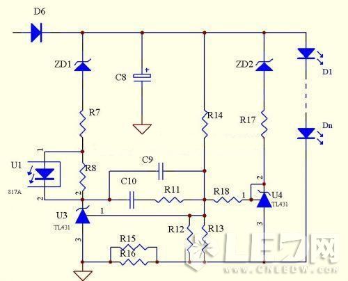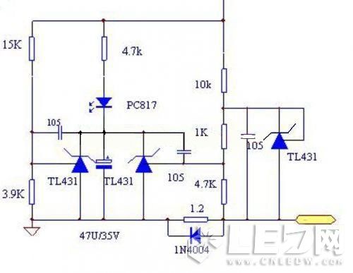 由于TL431是2.5V基準(zhǔn),故恒流取樣電路的損耗極大,不適合做輸出電流過大的電源。而此電路的致命缺陷是不能空載,故不適合做外置式的LED凈化燈電源,所以下面我們對線路的一些缺陷進(jìn)行了改進(jìn)。