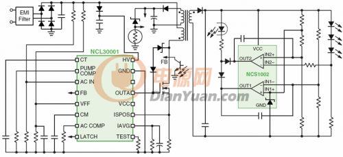 1) 基于NCL30001的電流可調節(jié)恒流功率因數(shù)校正區(qū)域照明LED電源
