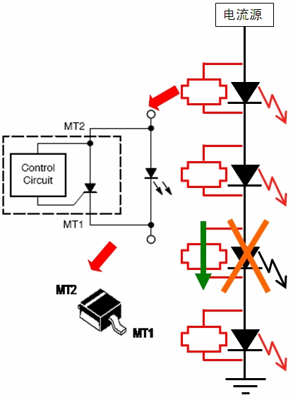 如前所述,區(qū)域照明應用中通常會采用多串LED。雖然LED本身的可靠性很高,但如果LED串中的某個LED凈化燈發(fā)生開路故障,那么整串LED就可能關閉,而街道照明等應用中就要避免這種狀況,從而降低后期維護成本。有鑒于此,安森美半導體推出了NUD4700LED電流旁路保護器(見圖3)。這器件是一款分流器件,萬一LED串中某個LED開路,則會提供電流旁路,確保在某個LED故障的條件下整串LED不會關閉;而且恰當處理散熱的話,還可支持大于1A的大電流。
