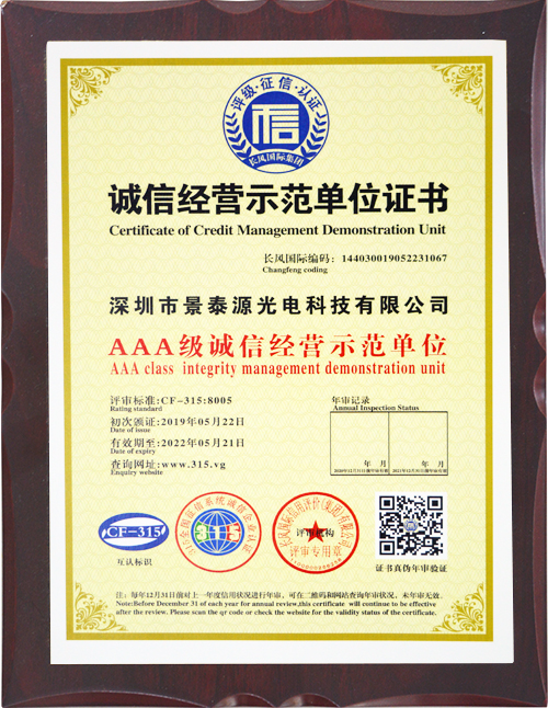 誠信經(jīng)營示范單位證書